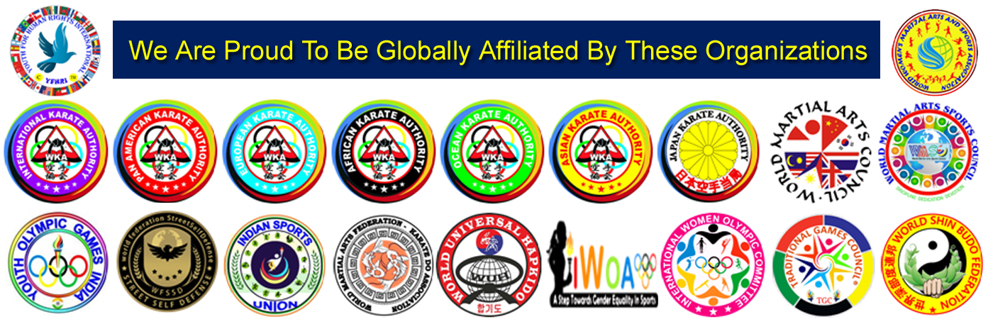 Affiliated to: International Karate Authority, Japan Karate Authority, Indian Karate Authority, Indian Sports Union, International Black Belt Bureau, World Martial Arts Sports Council, Traditional Sports Council Indian Women’s Olympic Association.