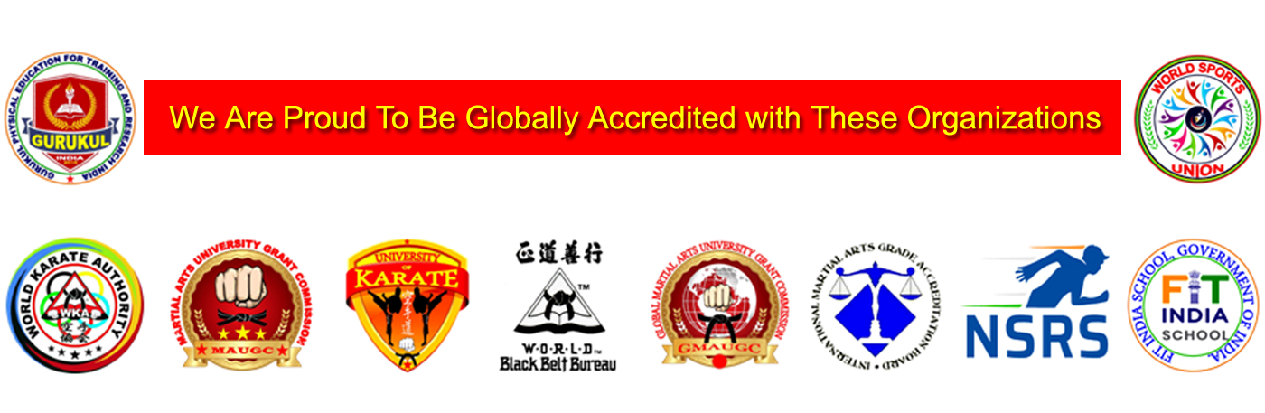 Accredited by: Martial Arts University Grants Commission (MAUGC), University Of Karate (UOK), Global Martial Arts University Grants Commission (GMAUGC), World Black Belt Bureau (WBBB), World Sports Union, World Karate Authority (WKA), International Martial Arts Grade Accreditation Board (IMAGAB), Gurukul Physical Education for Training and Research India.